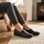 Skoen har lukket hæl og praktisk slip-on-design, så den sidder stabilt på foden og er nem at tage af og på.